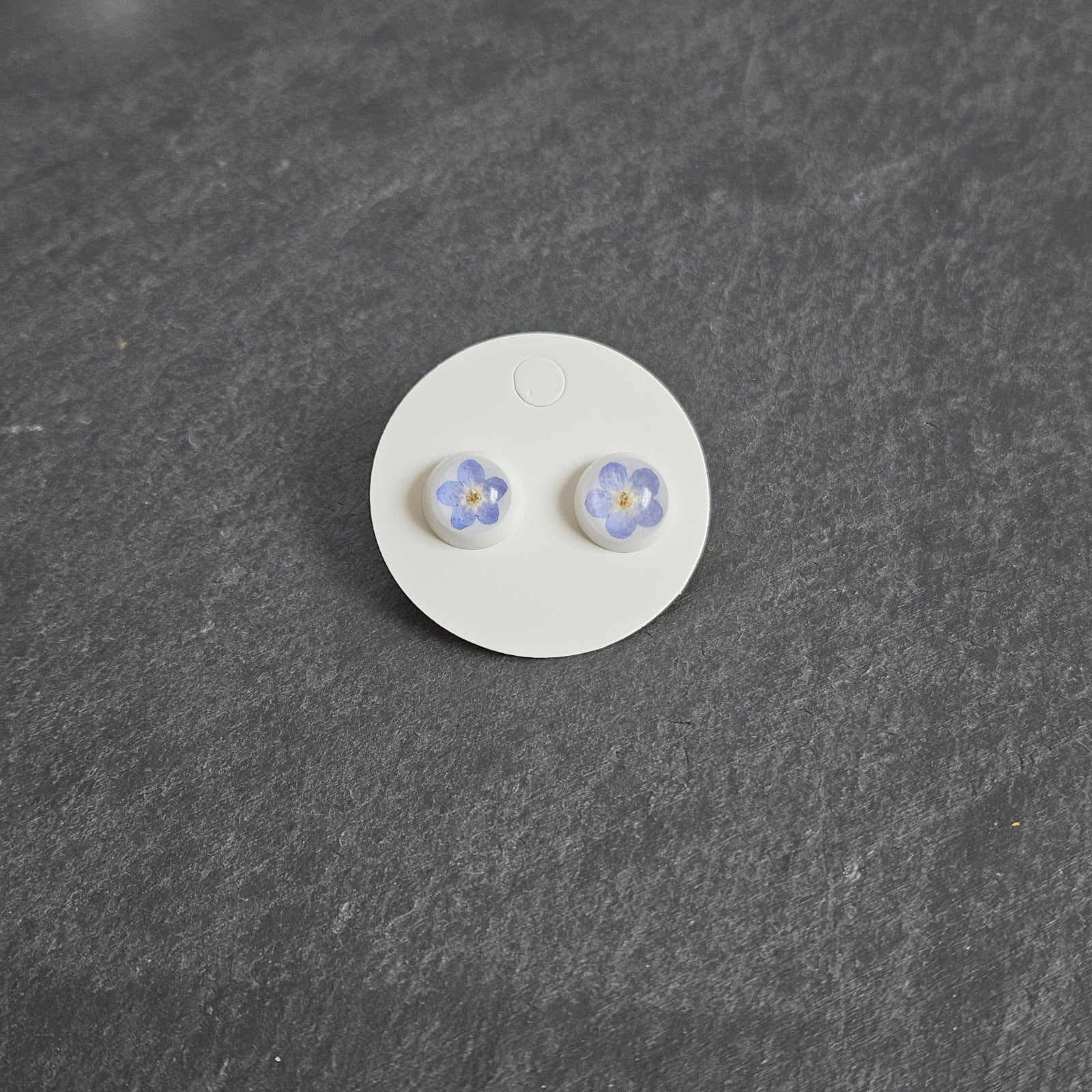 Ajoutez une touche de beauté naturelle à vos oreilles avec nos boucles d'oreilles puces en résine, avec une délicate inclusion de fleur bleue. Léger, confortable et élégant ce bijoux est indispensable pour terminer votre tenue.